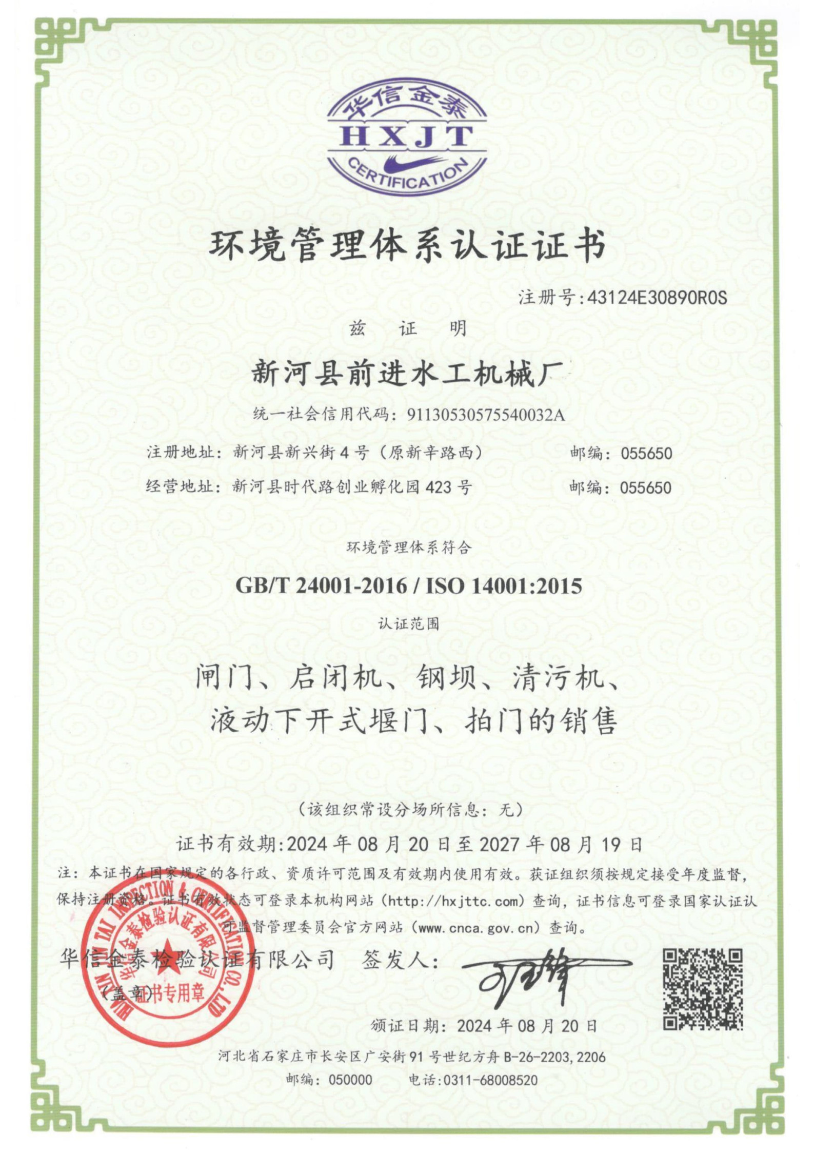 新河縣前進水工機械廠是一家專門從事水利工程設備研發(fā)生產(chǎn)的廠家,現(xiàn)有員工228人,各類高、中級專業(yè)工程技術人員近30人,技術生產(chǎn)工人180多人。公司占地面積14674平方米。公司擁有車、鉗、刨、銑、冷作、鈑金、鑄造等,工種齊全,加工能力和技術力量雄厚,并具備理化測試手段與儀器設備。前進水工專注景觀閘門,鋼壩,合頁壩,液壓升降壩,液壓閘門,臥倒門,一字門,人字門,液壓啟閉機,卷揚啟閉機,螺桿啟閉機,清污機,除污機,閘門,拍門等設備的研發(fā)與生產(chǎn),是新河水利工程產(chǎn)品行業(yè)的領跑者,不僅在同行業(yè)群中揭起了一次又一次的技術革新,更為水利工程企業(yè)提供了更高更大的選擇平臺。